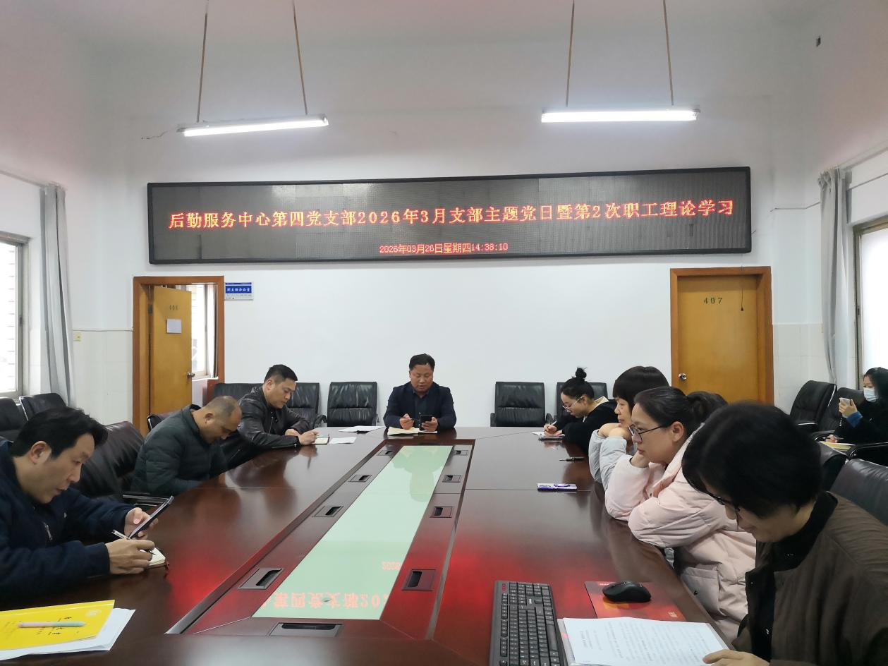 3月26日,后勤第四党支部在后勤四楼会议室开展2026年3月主题党日活动暨第2次教职工理论学习。会议由支部书记全小青主持,支部全体党员及全体正式职工参加。